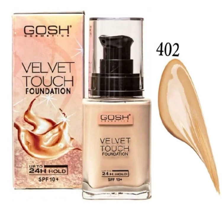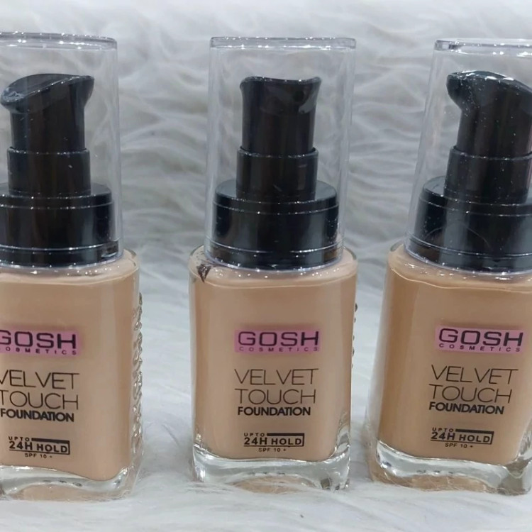 کرم پودر گاش بغل اورجینال Gosh velvet touch foundation ساخت کشور دانمارک فوق العاده پرفروش و پرطرفدار پوشش و کاور عالی فاقد چربی مقاومت در برابر آب و تعریق بافت سبک